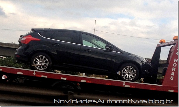 O leitor Marcio Mariz flagrou ontem na rodovia Castelo Branco, na altura de Osasco (SP) uma unidade do novo Ford Focus 2013 em cima de um reboque, sem qualquer camuflagem e com direito a uma placa em francês na traseira. É provável que a unidade estava seguindo para algum fornecedor instalado no Oeste Paulista.